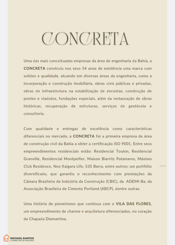 Este empreendimento é realizado pela Concreta, uma renomada empresa de engenharia com mais de 50 anos de mercado na Bahia, reconhecida por sua solidez e experiência em obras públicas e privadas.