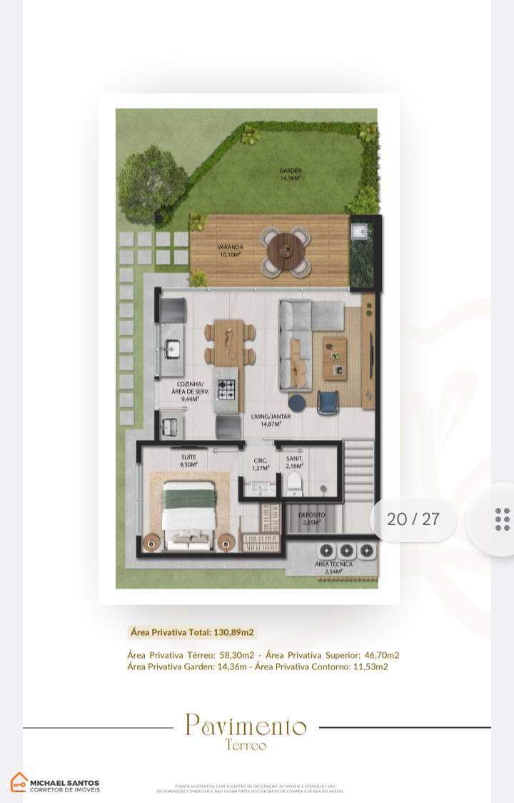 O condomínio oferece comodidades inéditas em Mucugê. As unidades possuem 3 suítes, garden e uma arquitetura belíssima, com área total de 130,89 m² e 115 m² de área construída.